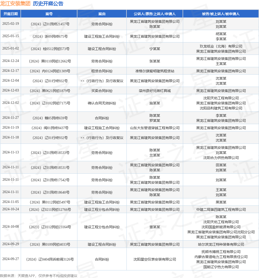 本站消息,根据天眼查APP显示,近日公布了一则黑龙江省建筑安装集团有限公司作为原告/上诉人的开庭公告,详细内容如下: